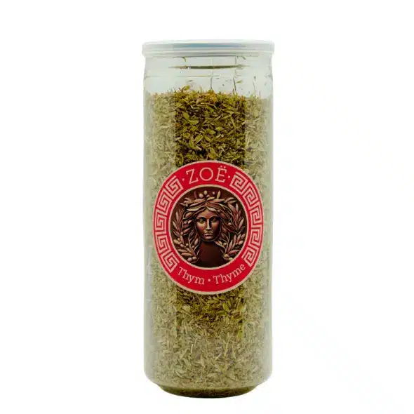 Zoë Greek Dried Thyme is hand-harvested from our Greek orchards and naturally dried to preserve its aromatic, earthy flavor and vibrant green color. Rich in essential oils and full of Mediterranean character, Zoë Thyme enhances the taste of countless dishes, from classic Greek recipes to modern cuisine. Naturally dried, it’s perfect for adding depth, aroma, and healthful benefits to everyday cooking.