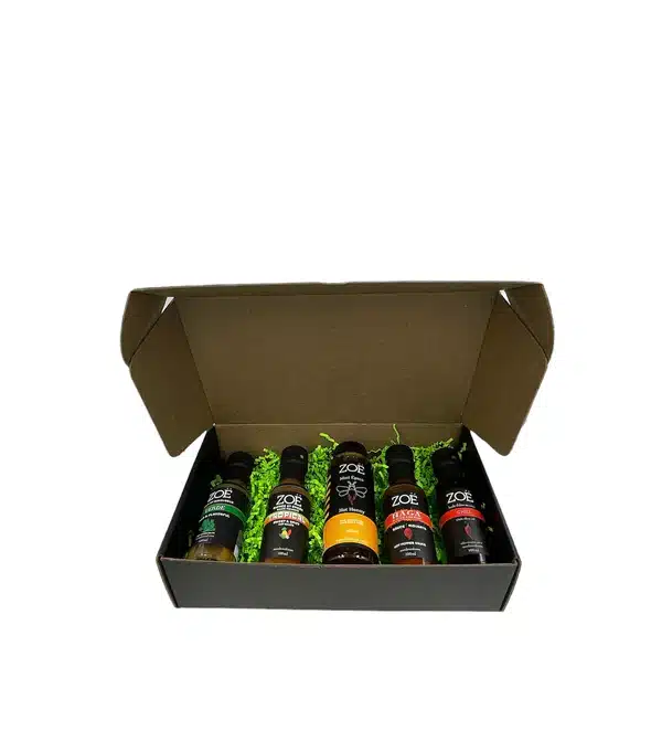 Looking for the perfect way to spice up your meals? The Zoë Spicy Box Set has you covered! This exclusive set brings together a carefully curated collection of the finest premium hot sauces, honey, and oils to deliver bold flavors and a spicy kick. Each product is crafted with love and passion, offering an unforgettable taste experience. Whether you’re a hot sauce aficionado or a newcomer to gourmet heat, the Zoë Spicy Box Set is your ticket to a flavor-packed adventure.